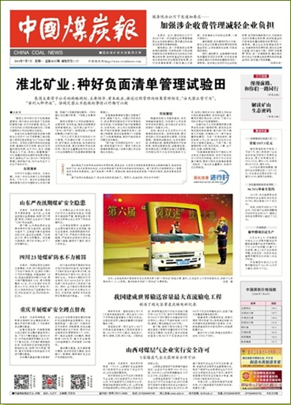 --实行负面清单管理和推行机关大部制分别入选2014年、2015年煤炭企业十大新闻