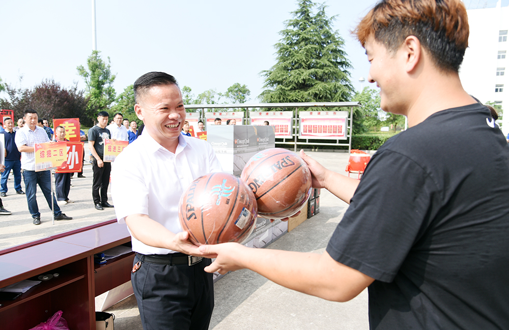 赛前,矿领导分别向篮球协会、乒乓球协会、羽毛球协会等5支协会颁发赛事用品。当日,有着品牌赛事之称的职工拔河比赛作为今年系列活动的首场赛事率先登场,这也标志着“迎中秋、庆国庆”系列文体活动正式拉开帷幕。 (撰稿:陈更;审核:何东方)
