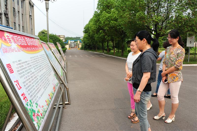 在“安全生产月”活动中,海孜矿协安会紧扣“亲情系安全 筑牢二防线”主题,通过印制宣传牌板真情呼唤安全、深入区队开展安全宣教活动叮嘱安全、走进职工家庭共守安全,牢牢筑起安全生产第二道防线。图为职工、家属在观看安全宣教牌板展。