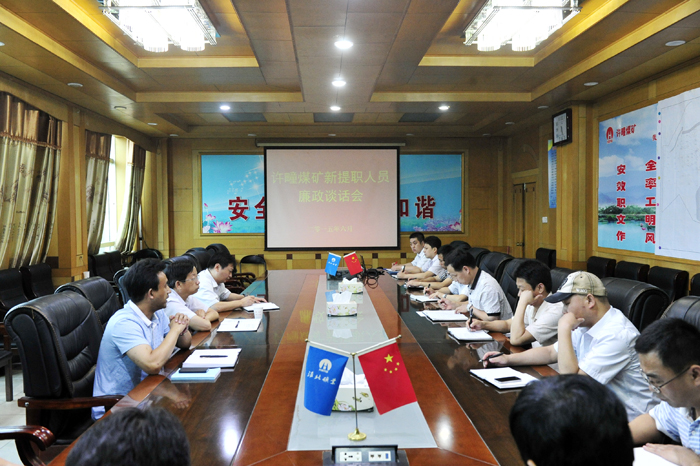 6月22日下午,许疃矿召开新提职人员廉政承诺及谈话会。为新提职干部把好廉洁岗前关,打好“预防针”。