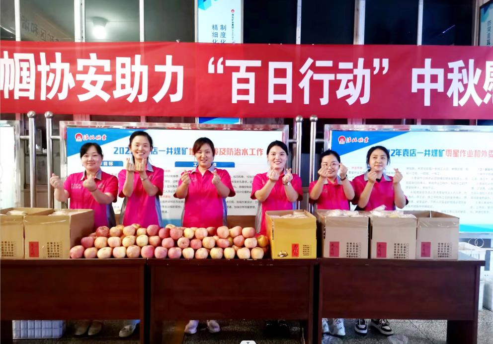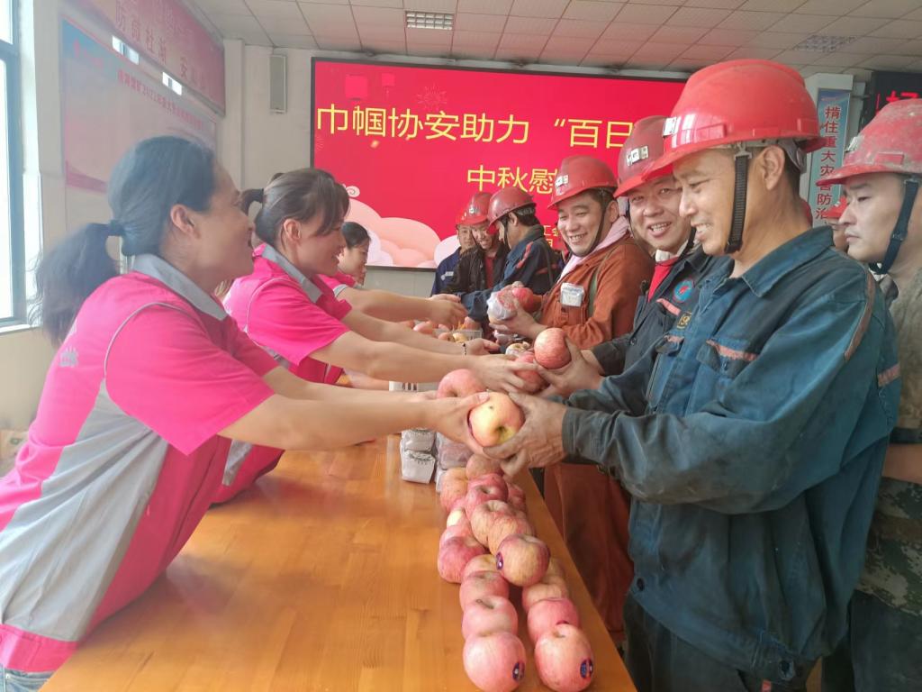 信湖煤矿工会组织开展巾帼协安助力“百日行动”中秋井口慰问活动。一块块圆圆的月饼、一个个香甜的苹果、一句句安全叮嘱传递着的满满的中秋祝福和浓浓的关爱。