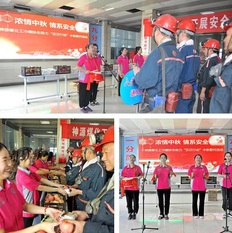 连日来,神源煤化工处处都能看到巾帼志协安员的身影,她们深入科区、车间、井口,开展安全宣讲、互动游戏、有奖问答、文艺表演,送上象征团圆的月饼和“平安果”,把公司党政的祝福送到职工身边,叮嘱大家牢记安全、平安过节。