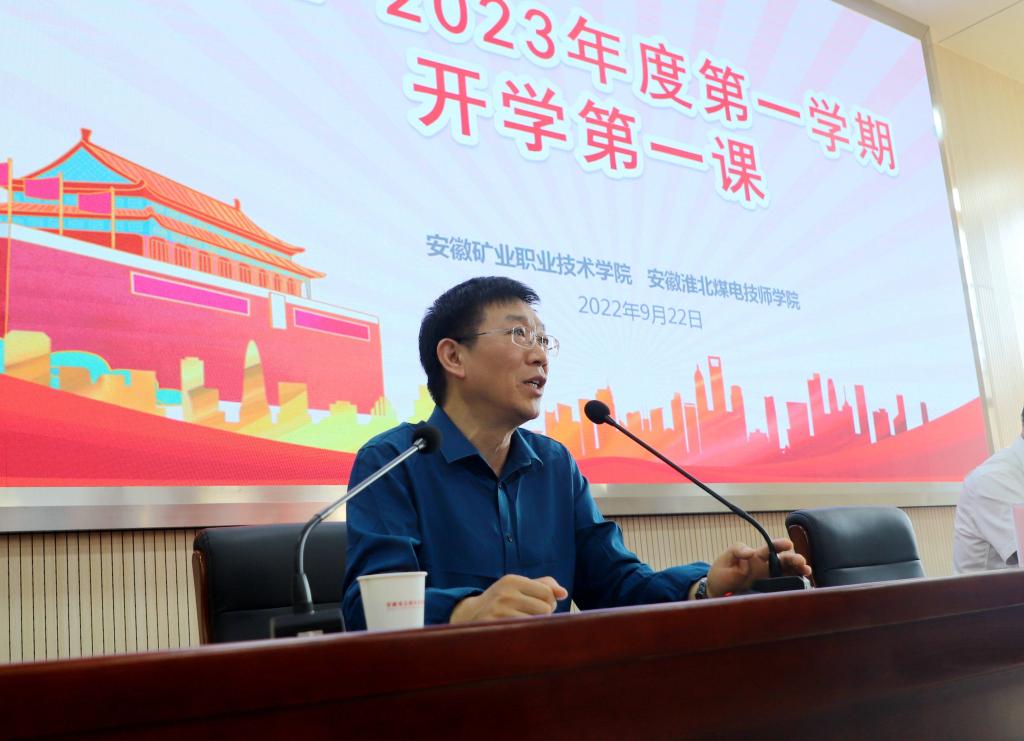 9月22日下午,安徽矿业职业技术学院举办秋季开学第一课,党的十八大代表、十三届全国人大代表、全国优秀共产党员、全国劳动模范,淮北矿业工匠大师杨杰来到现场“现身说法”,与2022级新生分享了他的成长经历,激励新同学及早确立奋斗目标,抓紧学习、勤于实践,珍惜学校时光,打牢人生的基础。