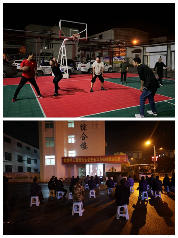 观影、篮球赛放松身心。为进一步倡导积极健康的班后生活方式,该矿开展“红色电影,你点我播”观影活动,通过每晚放映一部弘扬主旋律、充满正能量的影视大片,为在相对单调的封闭状态中的干部职工献上一场场视听盛宴;在不远处的篮球场,几支由职工自组的篮球队正在进行紧张刺激的对抗,呐喊声和助威声此起彼伏,现场气氛热烈。
