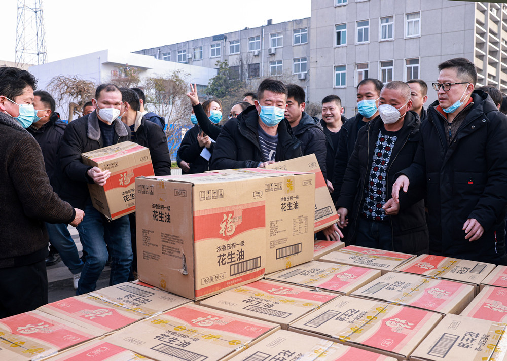 1月11日一大早,朱仙庄矿工业广场便热闹起来,“走,赶大集去,听说现在广场上正在发大公鸡呢,过年正好不用买了。”一名正在往发放现场去的职工满脸笑意对其工友说道。早上八点,职工们签字登记排队领取矿工会准备的活鸡、大米和食用油,手推车、三轮车都派上了用场,卸货、分装、领取各项工作有条不紊,现场热闹非凡。