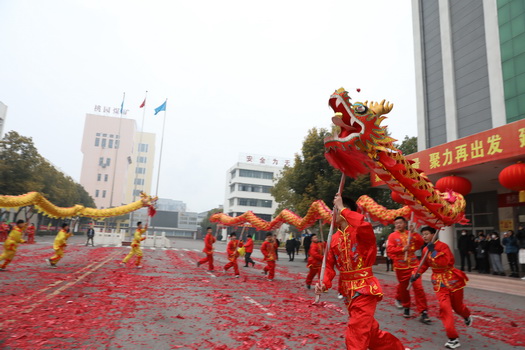 早上八点,伴随着阵阵威风锣鼓声,两条舞龙在矿工业广场上翻腾穿梭,上下游动,象征着淮北矿业集团艰苦创新业、开拓争一流的企业精神,也寓意兔年该矿立足新起点,聚焦高质量,奋进新征程,再攀新台阶。