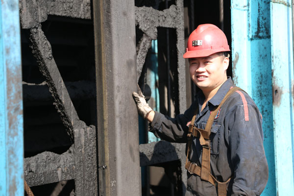 副井上口的把钩工陈方革。国庆节当天,副井共提升84钩。