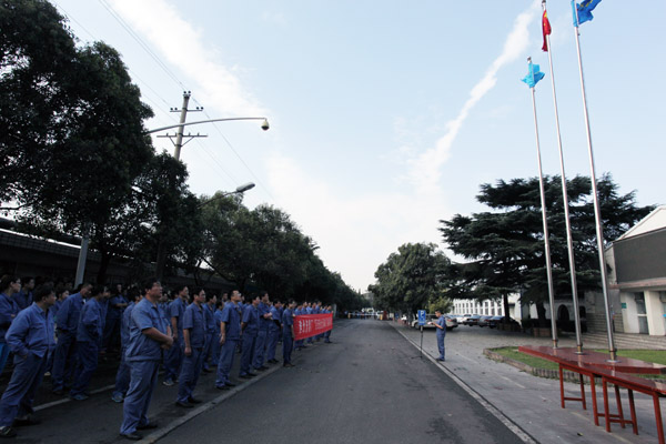 由一线职工组成的护旗手身着戎装,迈着整齐而有力的步伐来到升旗台前,在雄壮的国歌声中将国旗冉冉升起,全体职工凝神注目,场面庄严肃穆。升旗仪式中,自主管理红旗单位煤炭管理部、对标管理先进单位南区选煤车间代表分别作了表态性发言。