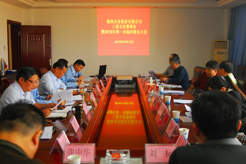 10月13日,临涣水务公司在三楼会议室召开三届五次董事会暨2015年第一次临时股东大会,淮北矿业、双龙公司、国华集团三家股东代表、董事、监事及公司高管出席会议。