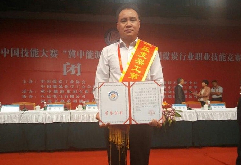 10月14日——17日,由中国煤炭工业协会、中国就业培训技术指导中心、中国能源化学工会全国委员会、共青团中央城市青年工作部联合主办,冀中能源集团承办的“冀中能源杯”第六届全国煤炭行业职业技能竞赛在峰峰集团中澳培训中心举行。本次大赛竞赛工种为采煤机司机、综采维修电工、液压支架工三个工种,共有来自全国13个省、市、自治区的45个煤炭企业的438人参赛。马硕作为淮北矿业集团9名参赛选手之一,参加了液压支架工的比赛。经过四天的激烈角逐,马硕从全国130名液压支架工技术精英中脱颖而出,取得了第14名的好成绩,受到了大赛组委会的表彰(每个工种表彰前15名),同时也是淮北矿业集团两名获奖选手之一。