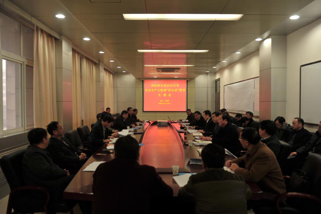 在袁店一矿行政会议室,国务院安委会安全生产大检查“回头看”督查组一行指出,此次安全生产大检查“回头看”督查活动,主要是贯彻落实党的十八届五中全会精神和习近平总书记、李克强总理等党中央、国务院领导同志关于加强安全生产工作的重要指示要求,进一步深化以危险化学品为重点的安全生产大检查工作,着力消除事故隐患,解决突出问题,提升工作成效,促进全国安全生产形势持续稳定好转。此次督查的主要内容是,着重检查前一阶段安全生产大检查发现的各类重大隐患和突出问题整改落实情况,以及当前安全生产各项重点工作措施落实情况。企业层面是否按照《安全生产法》的要求,建立健全隐患排查治理制度,实行隐患排查治理闭环管理;是否对安全生产大检查中发现的所有隐患建立了台账,并逐一按要求进行整改;对一时难以整改的重大隐患是否制定了整改方案,落实了防范措施,做到整改责任、措施、资金、时限、预案“五落实”。