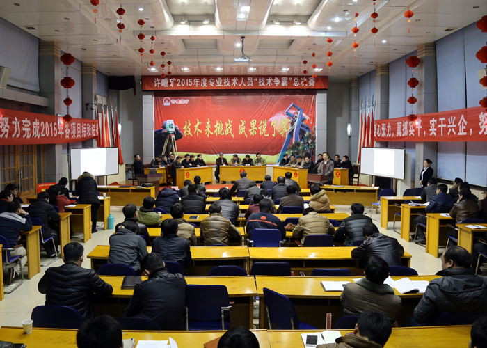 1月6日下午,该矿在办公楼一楼会议室举办了以“技术来挑战、成果说了算”为主题的技术人员2015年度争霸总决赛,来自采煤、掘进、机电、通防、地测系统的五支代表队参加了比赛,每支队伍由分管副总亲自“挂帅”,比赛采用现场技术成果展示、相互提问、现场解答等形式进行。比赛分为两个环节,一是团队技术成果展示环节,二是答辩环节;以正向加分,负向扣分的方式进行现场打分,最终确定“霸主”一个,优秀团队两个,优秀辩手两个及最佳个人展示一个。