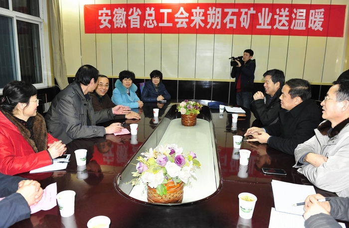 1月22日下午,朔风凛冽,雪花纷飞,室外寒气逼人,室内却温暖如春,暖意融融。安徽省总工会党组成员、经审会主任胡东辉一行在淮北市人大常委会副主任李晓光、淮北市总工会主席张香娥、淮北矿业集团公司工会副主席刘纪明及相关负责人陪同下,代表安徽省总工会专程到朔石矿业为企业、劳模和困难职工家中送温暖。受到朔石矿业领导张学文、杨朝风、丁健等热烈欢迎。