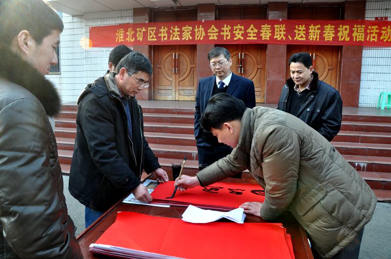 2月3日,淮北矿业工会组织矿区书法家们来到朱庄矿,为职工义务写春联。活动现场,书法家们挥毫泼墨,为职工们义务写春联,将浓浓的祝福送到矿区的千家万户。短短的时间里,地面上就铺满了一幅幅大红春联,现场到处充满了浓浓的年味。职工们纷纷表示,这样的活动很有意义,书法家们送祝福的同时,也传承了我们的中华传统文化。一幅幅苍劲有力的春联,写满了诚挚的平安祝愿和矿区职工对来年的期盼。
