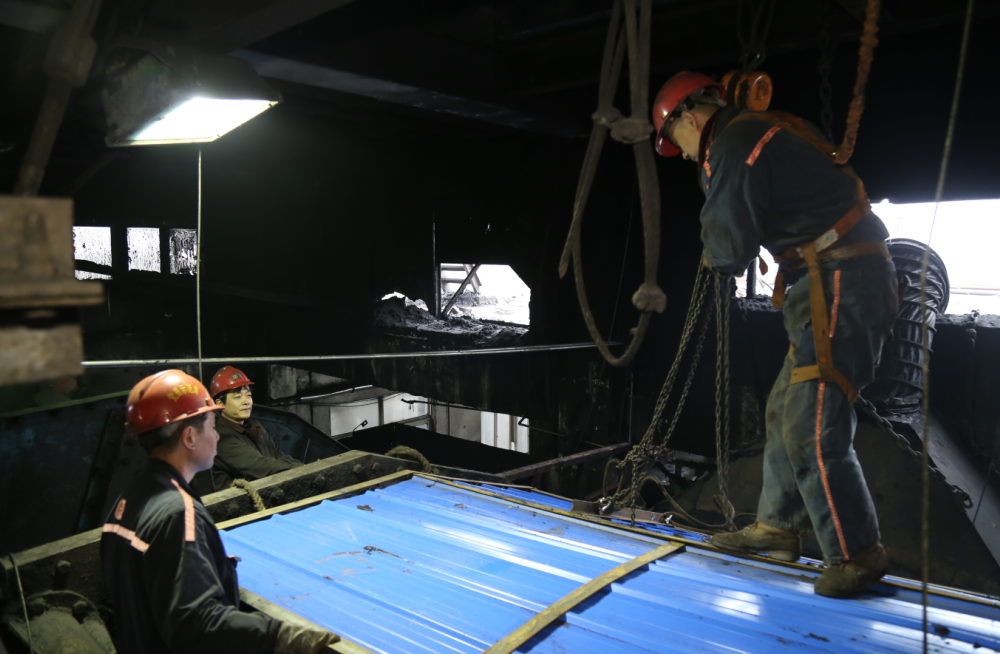 走进许疃矿煤管科筛分车间,保运一区几名职工正在为筛分机振动筛加装防尘盖。技术员丁兆祥对我们说:“矿上为了关心选矸楼楼女工身体健康,降低粉尘对选矸工的危害,自制防尘盖,降低给煤系统粉尘”。