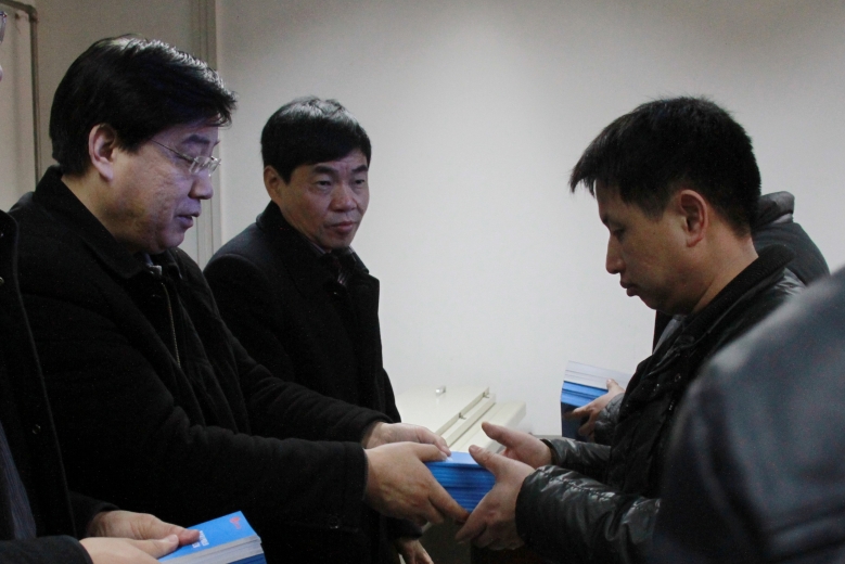 王玉山、张友根对淮北矿业刚性规定出台的背景、意义进行了说明,要求全矿管理人员真正从思想上认识到安全生产的重要性,从内心深处接受各项刚性规定要求,带头学习掌握、宣传解读刚性规定内容,不折不扣的把刚性规定落实在井下作业现场,确保矿井安全生产。随后,矿领导们现场为全矿技术员发放了刚性规定手册。