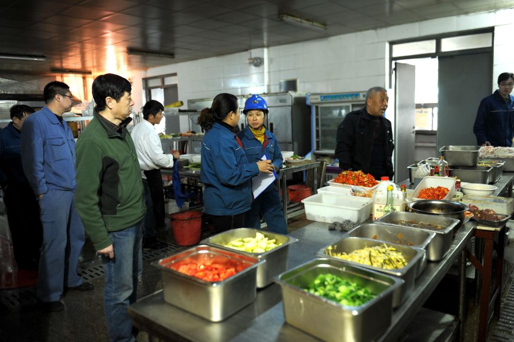 参与检查人员兵分三路,重点对食堂、浴池、寝室以及工广文明卫生进行了检查,重点就食堂菜品是否新鲜、后堂储物间是否干净整洁,浴池、寝室公共区域坏境等进行了检查。