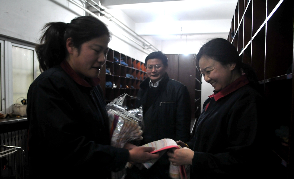 3月8日,孙疃矿工会副主席与部分女职工代表带着毛巾、洗发水等日用品分别深入到物业公司生活服务队、洗衣房、灯房等车间班组,慰问坚守岗位的女职工。