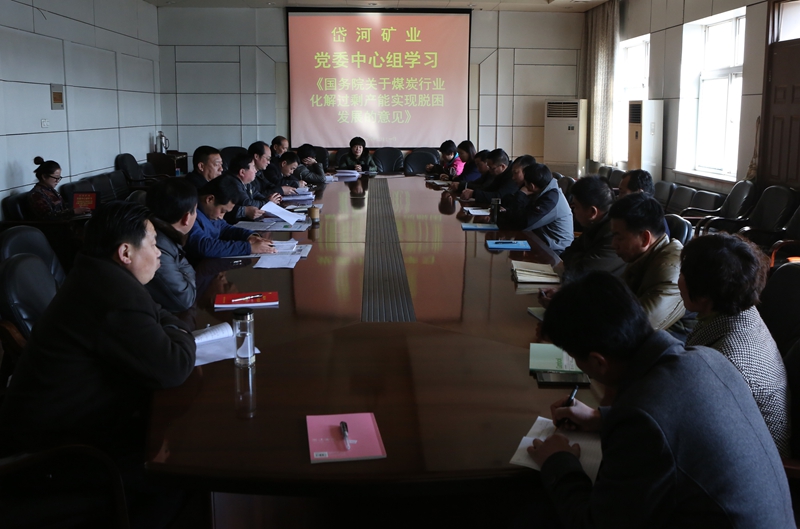 3月11日下午,岱河矿业公司召开党委中心组学习会,董事长、总经理乔庆煌带着大家认真学习了《2016年政府工作报告》和《国务院关于煤炭行业化解过剩产能实现脱困发展的意见》。