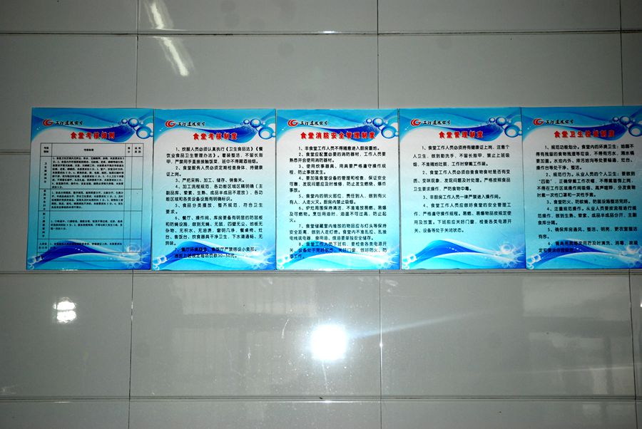 图为袁一矿建项目部食堂管理牌板。