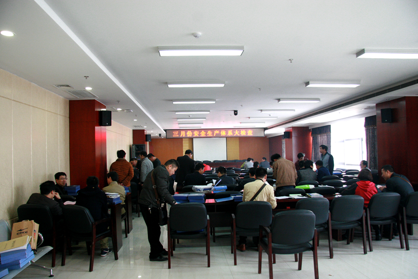 3月25日,工程建设公司15个安全生产体系要素牵头部门人员在四楼会议室按照新修订的《2016年安全生产体系建设实施办法》对9个矿建项目部的体系建设情况进行了集中检查、指导、考评、打分。