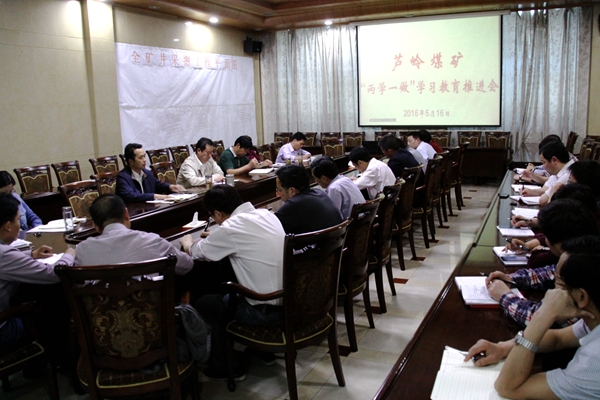 5月16日,芦岭矿在视频会议室召开“两学一做”推进会,矿党委书记徐崇建、党委副书记、纪委书记杨守富、工会主席王光华、机关部门管技人员、各单位党支部书记参加会议。