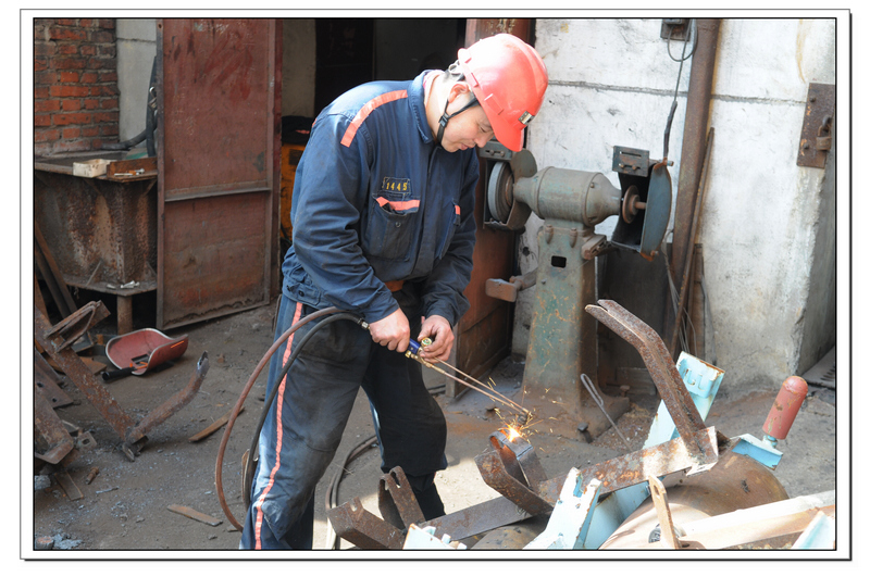 面对当前严峻的经济形势,童亭矿充分发挥党员在安全生产中的先锋模范带头作用,基层区队开展“党员争当修旧利废”先锋活动,通过回收、修旧利废使这些老旧设备“起死回生”,为矿节约大量资金。图为该矿保运二区党员石德勇利用工余时间维修废旧的上托辊架。