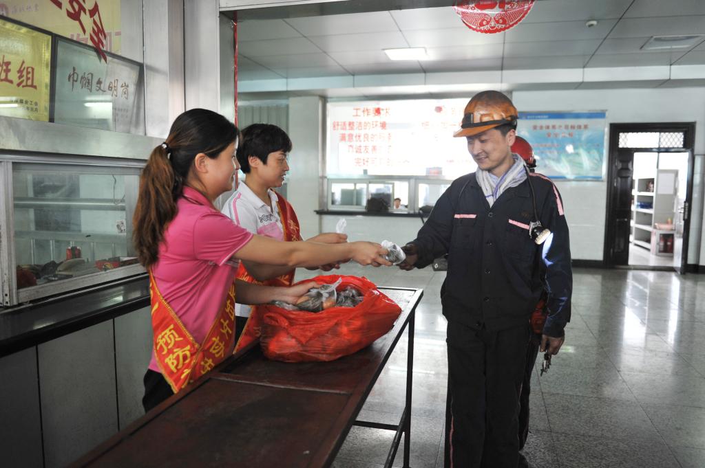 6月9日,端午佳节当日,青东煤业协安员在该公司灯房门口为节日期间坚守矿井检修岗位的职工送去了粽子、鸡蛋等慰问品,叮嘱职工规范操作,守卫安全,快乐过节。