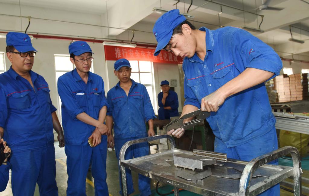 6月26日,雷鸣科化水胶车间的职工们正在进行岗位操作技术比武活动。 当日,有14名选手参加了此次比赛。该公司在各班组中经常开展岗位练兵、技术比武、员工素质大赛等活动,活跃了班组文化,提高了职工岗位操作技能。