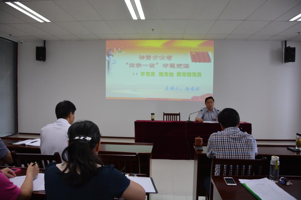 6月24日下午,物资分公司党委举办“两学一做”学习教育专题党课,公司领导班子成员,副科级及以上人员、计划、采购、经管、党群、验收、信盛6个党支部全体党员参加学习。
