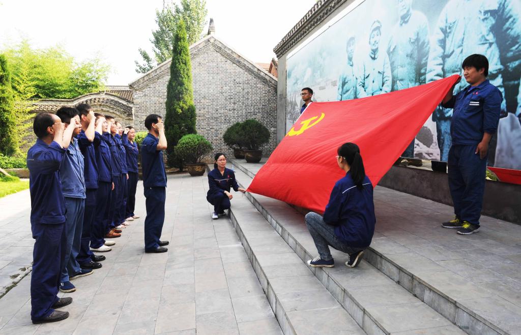 “我志愿加入中国共产党,拥护党的纲领……”6月29日,在临涣文昌宫淮海战役总前委旧址,临选厂7名新党员面对鲜红的党旗,举办了庄严的入党宣誓。