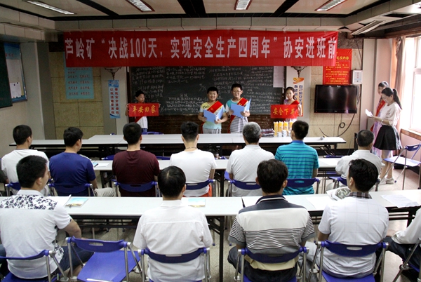 在掘进四区周五学习例会上,来自矿工家庭的少年儿童进行了安全宣讲,演唱了安全歌曲,希望爸爸叔叔严格遵守各项安全规程,落实好两个“规范”,自觉抵制不安全行为,做到用心每一天,干好每一件事,为实现芦岭矿安全生产四周年做出积极的贡献。