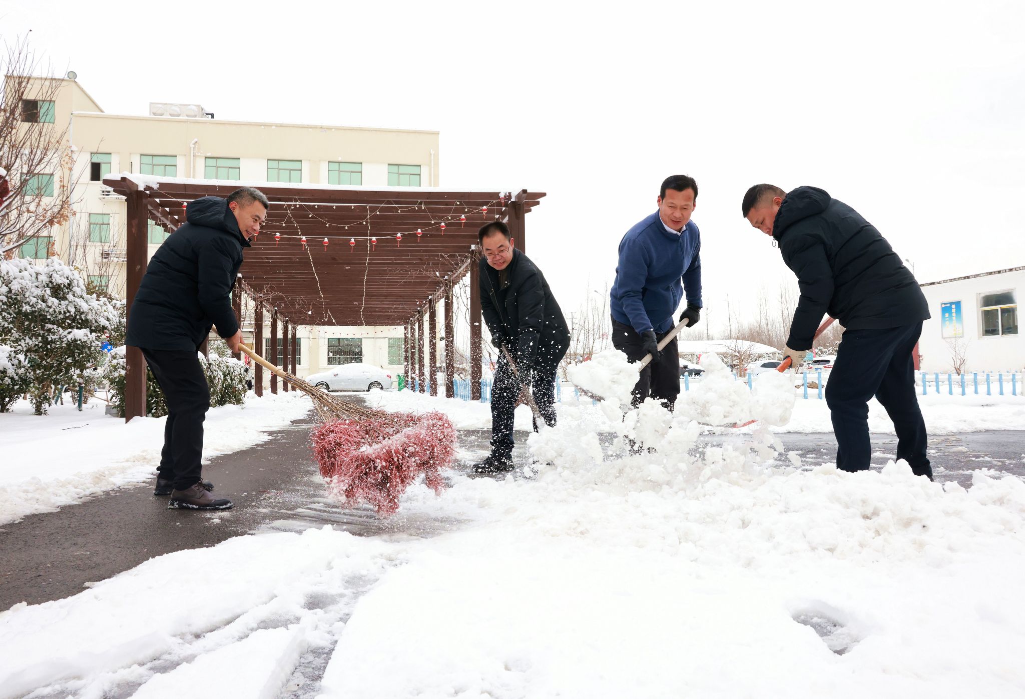 飞花瑞雪翩然而至,百里矿区遍披银装,在增添诗意的同时,也为广大职工的日常通行带来了诸多不便与安全隐患。为畅通道路、护航平安,淮北矿业集团各单位组织开展铲雪除冰保安全志愿服务活动。寒风凛冽中,办公楼前、厂房门口、主干道旁,志愿者们挥锹铲雪、合力破冰、细致清扫,汗水融化了冰雪,热情驱散了严寒,一条条清洁畅通的道路逐渐显现,职工们的出行安全得到了切实保障。