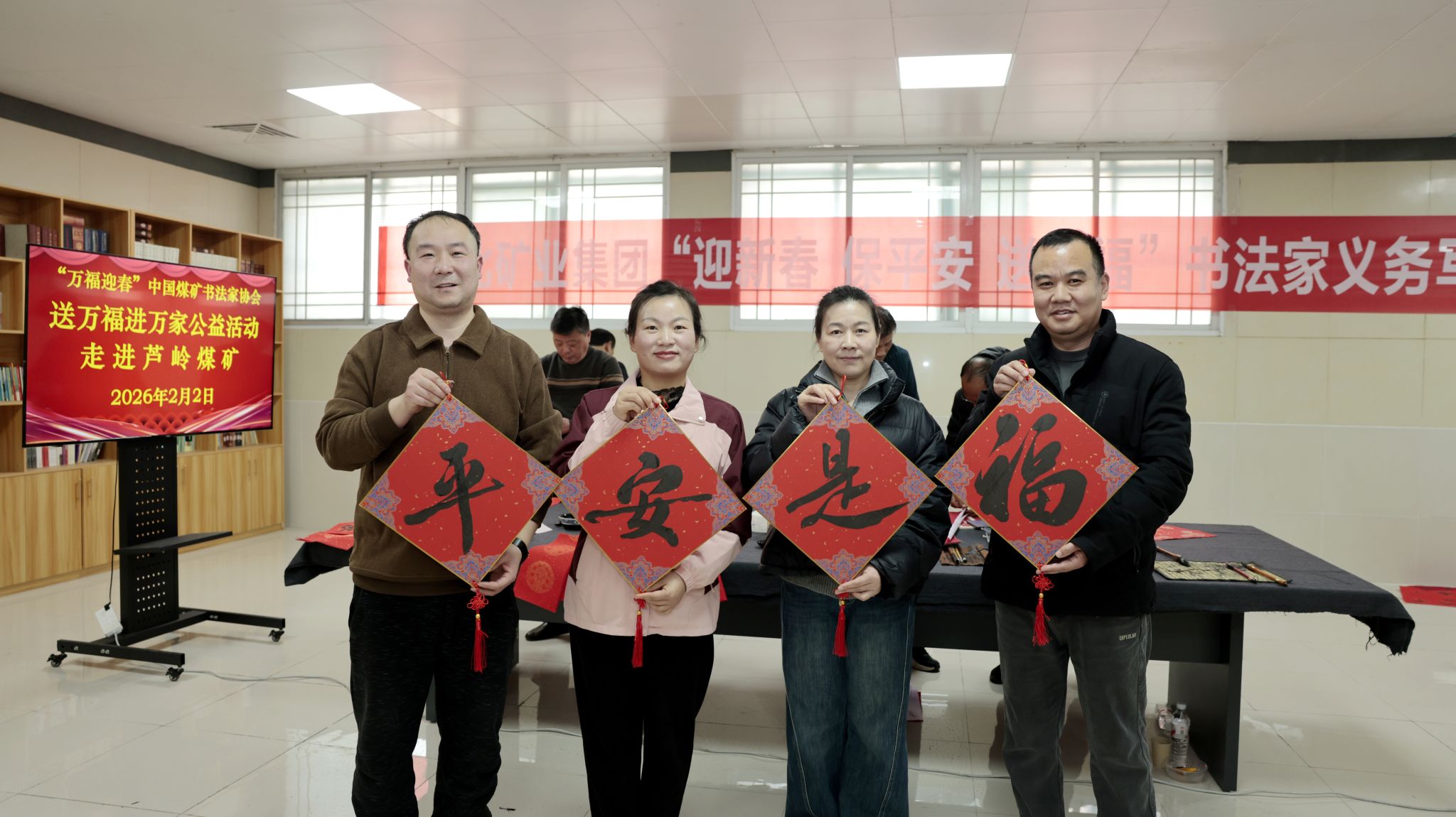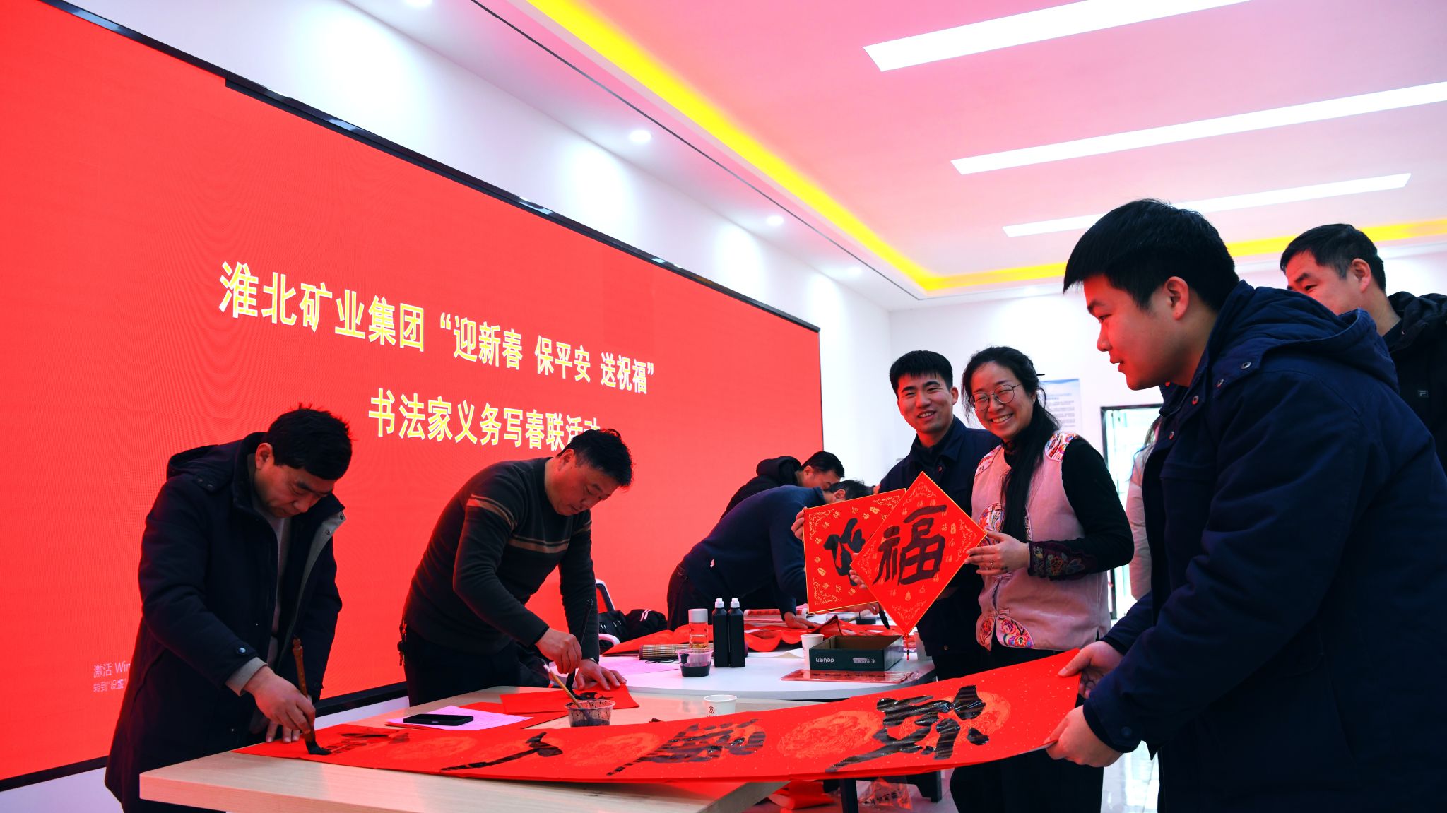 2月2日,淮北矿区书法协会组织书法家走进聚能发电公司,开展“迎新春 保平安 送祝福”文化慰问活动,为辛勤工作在建设一线的干部职工书写春联、赠送“福”字,送上诚挚的新春祝福。