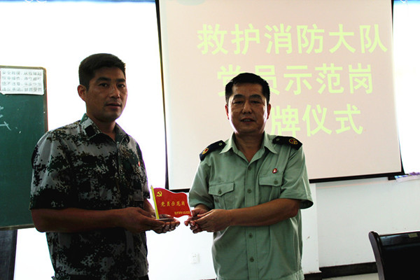 救护消防大队党委开展“党员示范岗”活动,展示全体党员风采,发挥党员的示范、带动、辐射作用,以党建促安全。