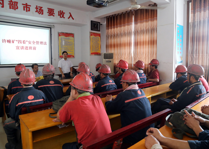 “四看”安全管理法是许疃矿近年来安全管理创新与经验总集成,由主要领导统领提炼而出的,对促进矿井安全生产、提高安全管理水平、促进本质安全矿井建设发挥了积极作用。宣讲会上宣讲组长结合“四看”安全管理法产生的背景和近期实施效果,进行简单的说明。从“看不见”,提高安全监督效果;“看得见”,提高集中管控能力;“看得近”,提高现场管理水平;“看得远”,提高超前预判能力四方面,详细介绍了“四看”安全管理法具体内容。宣讲过程中用通俗易懂的语言,引用身边的工作案例,向现场职工说明了“四看”安全管理法对于安全生产的重要性,用“火炉”原理,告诫大家严厉打击井下通风报信行为,不触红线、不碰底线,确保矿井安全生产。