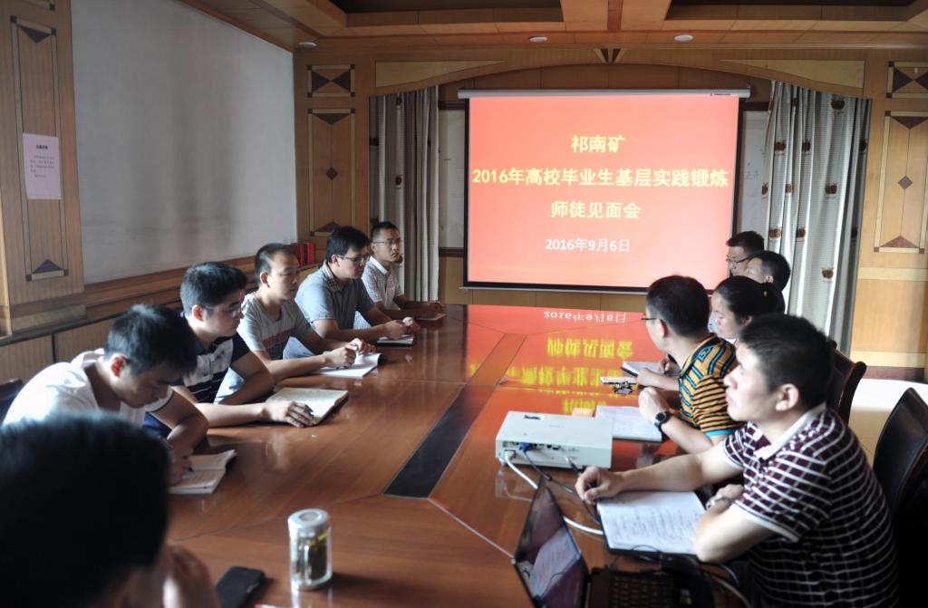 9月6日,祁南矿召开2016年高校毕业生基层实践锻炼师徒见面会,为三名新分配的大学毕业生指定见习单位和见习指导师傅,并对毕业生见习工作进行具体安排。