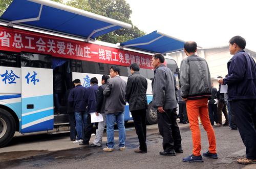 10月13日,安徽省总工会组织医务人员来到朱仙庄矿,开展关爱一线职工免费上门送体检活动。