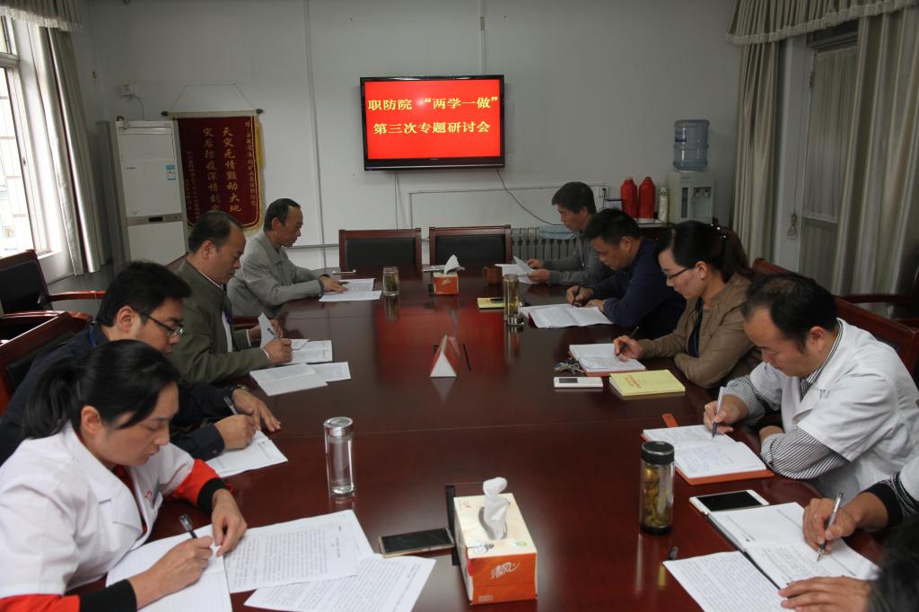 10月14日,职防院召开党委中心组学习会暨“两学一做”学习教育第三专题研讨会,在家院领导围绕“坚守纪律底线,培养高尚情操”这一主题认真开展专题研讨。