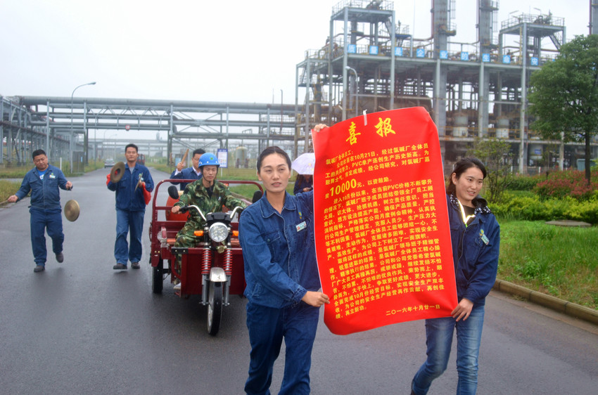 10月21日,公司PVC单产1280吨,再创生产历史新高。进入10月份以来, PVC价格节节攀升,烧碱、建材、化工产品市场持续利好,短时出现供不应求的良好局面。氯碱厂全体干群顾全大局、抢抓机遇,严控消耗指标,严格落实公司月度例会精神,克服人员少,生产压力大等不利因素,实现安全、高效生产,为公司树立一面旗帜。
