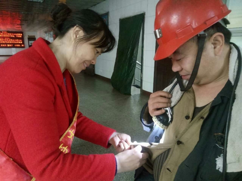 活动中,协安员们个个面带微笑、精神饱满,为上下井的职工们钉纽扣、补工装,并叮嘱他们在井下一定不能违章作业,时刻想着安全、注意安全。(责编:徐成贵)