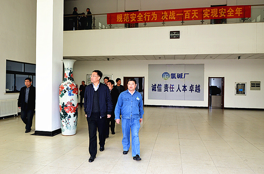 随后,在丘永桂的陪同下,袁发林一行又乘车来到园区观礼台、氯碱厂中控室与PVC包装车间参观交流。