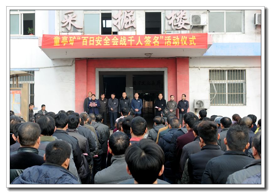 12月2日,童亭矿在采掘楼前举办“百日安全会战千人签名”活动。该矿近千名干部职工参加了活动仪式。