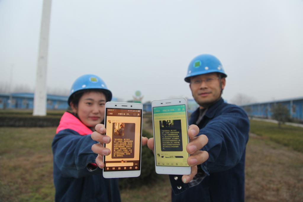 自华塑股份开展“百日安全大会战”以来,该公司团委积极响党委号召,以服务一线、服务青年为切入点,多措并举组织发动青年员工投入到安全大会战中,先后组织1600多名班组员工逐级签订安全承诺书,开展4期“零点行动”督查,坚持2周一次“安全之夜知识竞答”,推行在岗人员岗位安全拍照写实,大力推进“青工网络晒安全”活动,通过网聚的力量,进一步唤醒青工安全防范意识,共同织密华塑安全网。图为该公司二名员工展示刚才收到的“青工网络晒安全”照片信息。