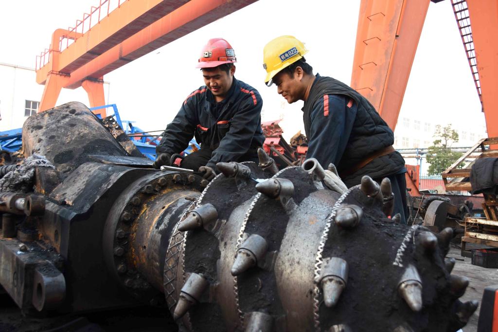 今年以来,袁店一矿精打减亏增盈“小算盘”,激发全员自主修旧利废、节支创效的积极性,小到灯房擦灯的棉纱洗了再用,大到链条、千斤顶、综掘机等机械设备的维修养护,“小算盘”拨出了“大效益”,1至11月份累计修旧利废减亏增盈约1200万元。图为两名职工正在对刚升井的综掘机进行维修养护。(责编:徐成贵)