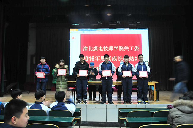 12月21日,淮北煤电技师学院关工委召开2016年度“成长驿站”征文表彰大会。这次征文比赛评选出13名一等奖,26名二等奖,49名三等奖,88名获奖同学在会上受到隆重表彰。该学院希望更多同学积极参与到“成长驿站”的各项活动中去,不断健康成长,取得优异成绩。