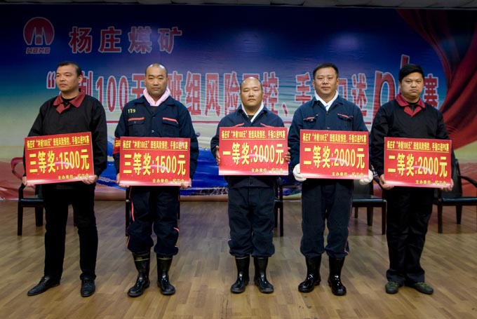 最后,淮北矿业工会领导和该矿矿长李遵明、矿党委书记杨朝风为分获一、二、三等奖的班组颁了奖。