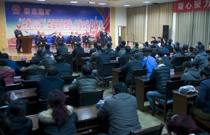 为深入推进“百日安全会战”活动,营造浓厚的安全生产舆论氛围,提振职工精神,规范职工行为,增强职工安全意识,提高职工操作技能,奋战100天,确保顺利实现安全年,12月21日下午,杨庄矿举行“冲刺100天”班组风险预控、手指口述PK赛。综采一区“生产一班”、保运区“机电检修班”、综掘一区“一队二班”、运输区“和谐号”班组、机电科“啄木鸟”班组五个班组参加了比赛。