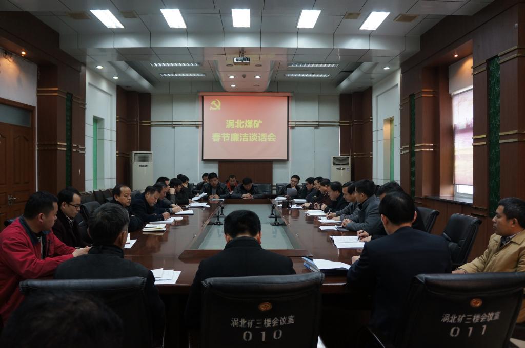 元月19日,涡北矿召开春节廉洁谈话会,在家副总师以上领导、基层党支部书记、人财物关键岗位负责同志参加会议。