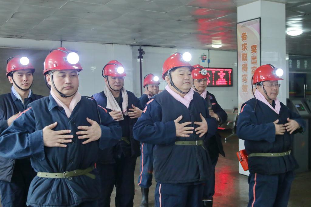 一到矿,周卫金简单与该矿领导班子互道新年祝福,在矿长张晓更、安监处长黄正练等人的陪同下深入井下8202综采工作面检查指导工作。